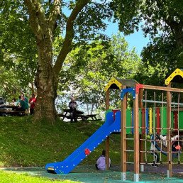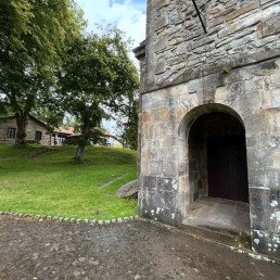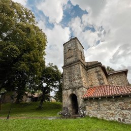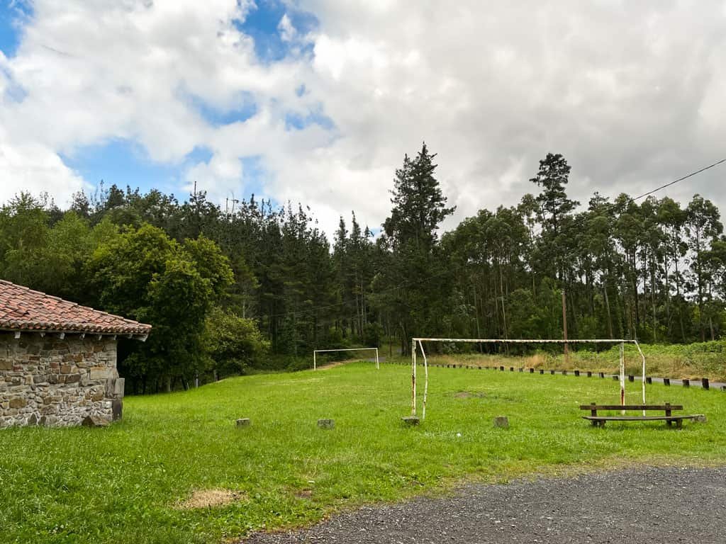 Justo al lado está la Iglesia de San Lorenzo —siglo XIX—, parroquia que alterna misas con la de Santa María de Idibalzaga, en el barrio de Elizalde de Errigoiti. Tras la iglesia, llegamos a un campo de fútbol de hierba silvestre con dos porterías blancas, buen lugar para la expansión y el recreo