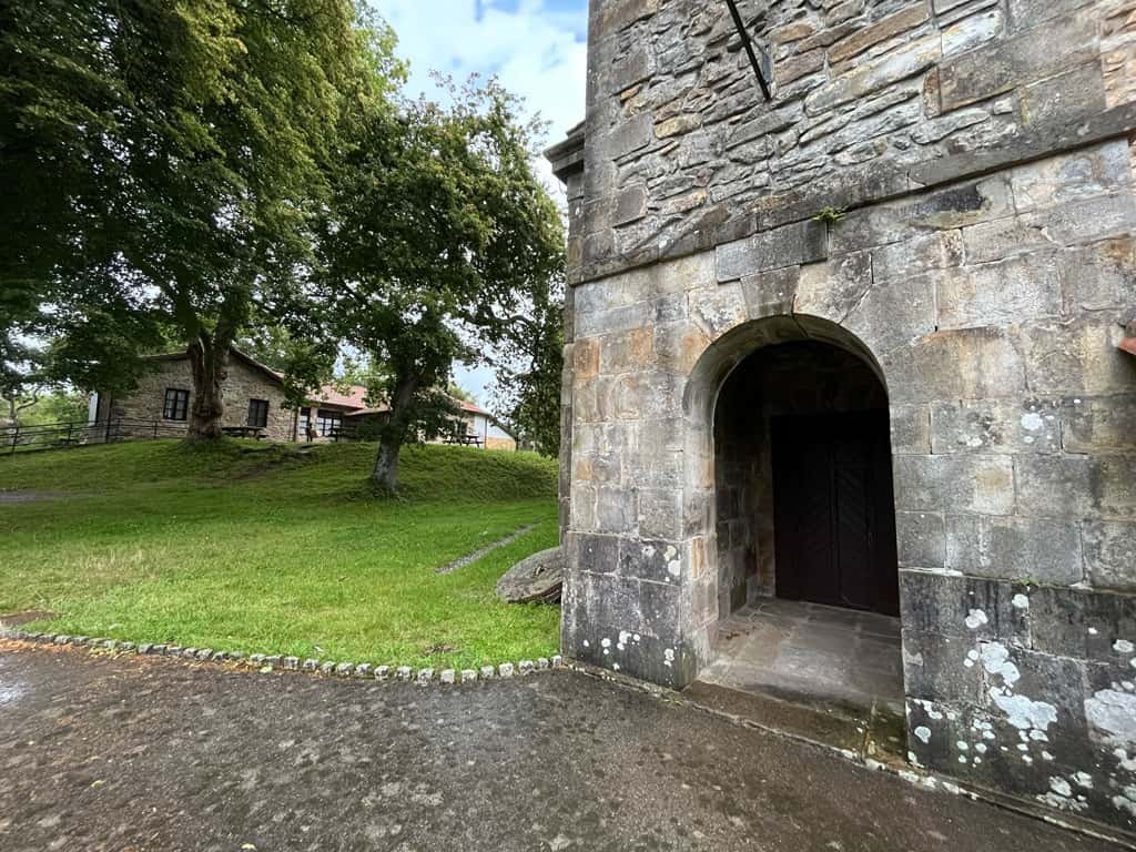 No nos importa, todo nos viene bien, hasta la lluvia. ¿Por qué no dedicar la mañana a caminar y admirar la naturaleza? Un desayuno reconfortante, y ponemos rumbo noroeste. Subimos una leve pendiente por la carretera asfaltada, entre pastizales poblados de ganado, y a unos 15 minutos, junto a una fuente, accedemos por una escalinata a la ermita de la Santa Cruz, en Bizkaigane. Desde allí, a casi 400 metros de altura, podemos divisar los 360º de panorámica de gran parte de Bizkaia: Bilbao, el abra de la ría del Nervión, el mar a lo lejos, los bosques cantábricos, pueblos de blancas edificaciones y tejados rojos, caseríos, el parque natural de Urkiola, las altas montañas nevadas… Paisajes que desde ese lugar calman el alma