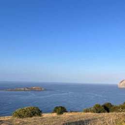 Ascendemos más hacia el norte, por una serpenteante carretera de vetustos árboles cubiertos de hiedra; alcanzamos el faro de Matxitxako —el más saliente de la costa de Euskadi y el segundo más septentrional de la Península Ibérica—, que ofrece una panorámica de casi 360º del horizonte oceánico. Subiendo unos kilómetros más arriba, aparcamos, y nos asomamos al mirador, desde el que oteamos el islote de San Juan de Gaztelugatxe, sobre el que se construyó la ermita homónima —siglo X—, un prodigio arquitectónico que reta a la bravura del mar abierto.  Desde el mirador, fotografiamos, respiramos y guardamos en nuestras memorias —artificiales y orgánicas— los bellos recuerdos de esa belleza natural y sobrecogedora